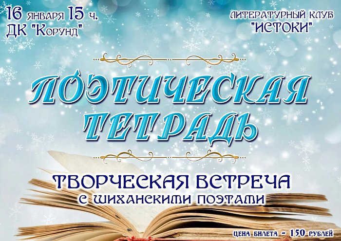 Дорогие друзья, уважаемые любители литературного творчества! В наступившем году цикл программ клуба "Истоки" мы решили посвятить творческим встречам с шиханскими поэтами.