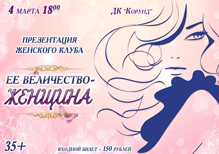 Милые дамы! Мы спешим анонсировать вам, что 4 марта в читальном зале библиотеки состоится презентация нового клуба "Ее величество - ЖЕНЩИНА". Встречи будут проходить ежемесячно, каждую третью среду в 18 часов.