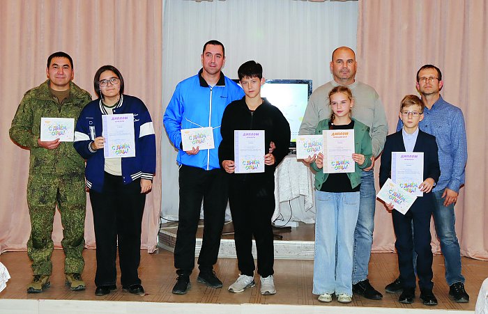 Интеллектуальный баттл развернулся в семи захватывающих раундах, каждый из которых был тщательно продуман, чтобы раскрыть разные грани талантов участников. Первым испытанием стал «Блиц-опрос». Здесь командам предстояло продемонстрировать свой кругозор, ответив на десять вопросов из самых разнообразных областей знаний - от глубин русской литературы до тайн необъятной астрономии. Не только широта знаний, но и скорость реакции были ключевыми факторами успеха. Далее последовал раунд «Найди общее». Среди представленных картинок участникам необходимо было найти скрытые сходства, развивая свою наблюдательность и логическое мышление. Третий раунд, известный многим как игра «Крокодил» или «Угадай слово», вызвал бурю искреннего смеха и веселья. Эта игра заставила участников буквально читать мысли друг друга. Особенно ярко проявила себя семья Шибаевых: когда сын Артём задал отцу вопрос: «Что обычно совершают в школе?», папа Евгений моментально ответил - «Побег!», и это было абсолютно правильно. Затем наступил раунд «Формула всего», где участникам предстояло проявить смекалку и изобретательность, чтобы найти нестандартные решения. Пятым, музыкальным раундом, стали наслаждаться настоящие меломаны. Всего несколько секунд знакомой мелодии - и нужно было угадать песню и исполнителя. Репертуар был подобран так, чтобы песни были близки как папам, так и их детям. Особое впечатление на всех присутствующих произвели семьи Усиновых и Голубь, которые оказались самыми музыкальными. Шестой раунд - «Классика жанра». На этот раз в картинках были зашифрованы известные высказывания и пословицы, которые требовалось расшифровать. И, наконец, кульминацией всего мероприятия стало общее дефиле пап и детей. Этот заключительный раунд был призван проверить, чья походка наиболее схожа, и наглядно продемонстрировать истинность высказывания: «яблоко от яблони недалеко падает».