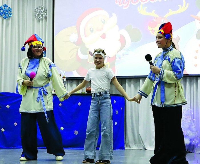 Прекрасные концертные номера «Кабы не было зимы» (дуэт А. Букаров, М. Зинченко), «Яркая звездочка» (А. Криволапова), хореографическая композиция «Снежинки» (ансамбль «Созвездие»), стихотворение «Рождество Христово» (А. Шибаев) были с восторгом встречены юными зрителями. Повеселили и позабавили всех скоморохи и Коза-дереза (В. Усинова, В. Шкарабейникова, М. Болтова), которые спели веселые колядки и пожелали всем добра и счастья. Дети с удовольствием приняли участие в массовых играх, отгадывали рождественские загадки, узнали свою судьбу в шуточном гадании и смогли загадать самое заветное желание, глядя на волшебный огонь рождественской свечи.