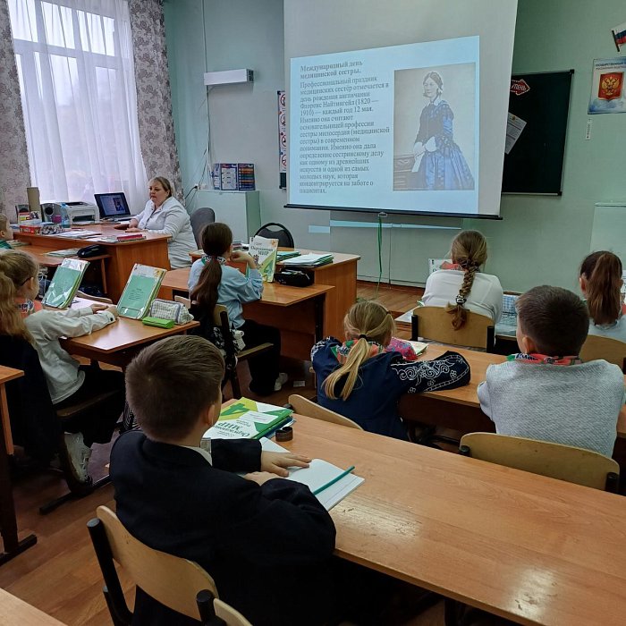 В школе стартовала насыщенная неделя профориентации для обучающихся. В рамках профориентационной работы в 4 «Б» классе прошло путешествие по стране профессий «Знакомьтесь: медсестра-правая рука доктора!» Панфилова Виктория Александровна, старшая медицинская сестра ГАУ СО «Шиханский дом –интернат для престарелых и инвалидов», рассказала ребятам об особенностях своей профессии и о том, что нужно знать, чтобы стать профессионалом в области медицины. Беседа с элементами презентации была организована с целью познакомить учащихся с профессией медицинского работника и показать важность этой специальности в современном обществе. Учащиеся обсудили вопросы: когда нужно начинать задумываться о выборе профессии? Легко ли выбрать профессию? Что будет, если человек выбирает профессию, которая ему не подходит? Как это может повлиять на его жизненный путь? Что необходимо, чтобы суметь правильно выбрать профессию? Выяснили различия между понятиями: профессия, специальность, квалификация, должность. Виктория Александровна напомнила детям, что все начинается со школьной скамьи и посоветовала серьезно относиться к учебе в школе, т.к. это поможет им определить свои интересы, значит, правильно выбрать будущую профессию.