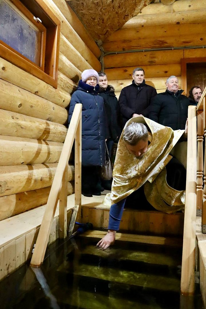 Отец Александр обратился к собравшимся с напутствием и поздравлением. Он отметил, что омовение в крещенской купели прежде всего давняя народная традиция, а не обязательный духовный акт. В завершение отец Александр пожелал всем мира, крепкого здравия и укрепления в вере.