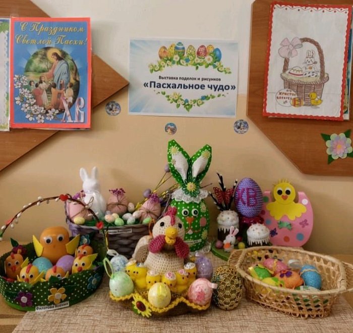Пасха - добрый светлый и православный праздник. Его с нетерпеньем ждут и взрослые и дети. Пасха празднуется по - особенному торжественно. Народные праздники знакомят детей с существующими традициями и обычаями русского народа. Педагоги детского сада «Звёздочка» с раннего возраста знакомят детей с историей нашей Родины и богатством культурных традиций. Не остался незамеченным этот праздник и в группе № 9 «Ладушки». В преддверии этого замечательного события в группе прошла пасхальная неделя. Дети слушали песни, играли в народные игры. Воспитанники совместно с родителями и воспитателями подготовились к выставке «Пасхальное чудо». Были представлены творческие работы: вязанные и сшитые руками мастериц куличи, яйца, украшенные бисером и разноцветными лентами пасхальные поделки. Вся проведенная работа поспособствовала возрождению православных традиций, сформировала у детей первичные представления о духовном наследии православного народа.