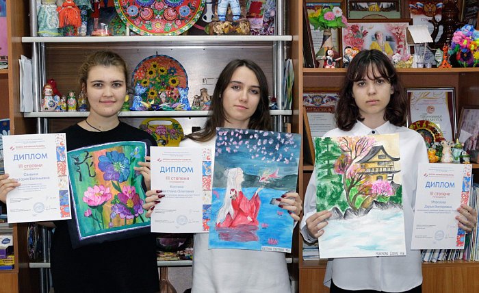 Не остались без наград и наши юные художницы кружка «Радужные цвета» (рук. О.М. Раскова). Работы Виктории Саквиной, Светланы Костиной, Мадины Моисеевой и Дарьи Морозовой отличались ярким колоритом и тематической сюжетной линией. Каждой из воспитанниц присужден Диплом 3 степени.