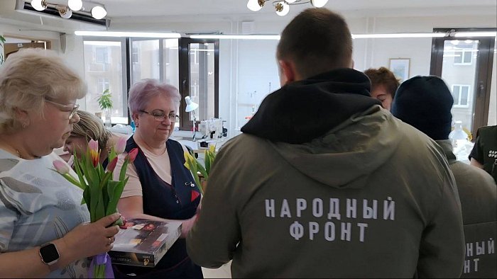 Активисты Молодёжки Народного фронта поблагодарили женщин за их труд, самоотверженность и поддержку военнослужащих. Для волонтёров подготовили небольшие праздничные подарки — цветы, торты и чай.