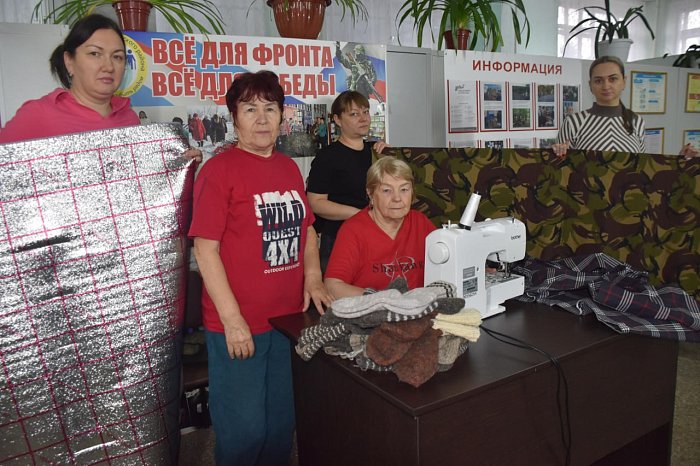 В творческой мастерской «ДоброЦентр» при комплексном центре соцобслуживания населения Новобурасского района волонтеры продолжают плести маскировочные сети, в мастерской «Шьем для СВОих» отшивают нательное белье, а пенсионеры отправляют продуктовые наборы, домашнюю выпечку, лекарства и средства личной гигиены.