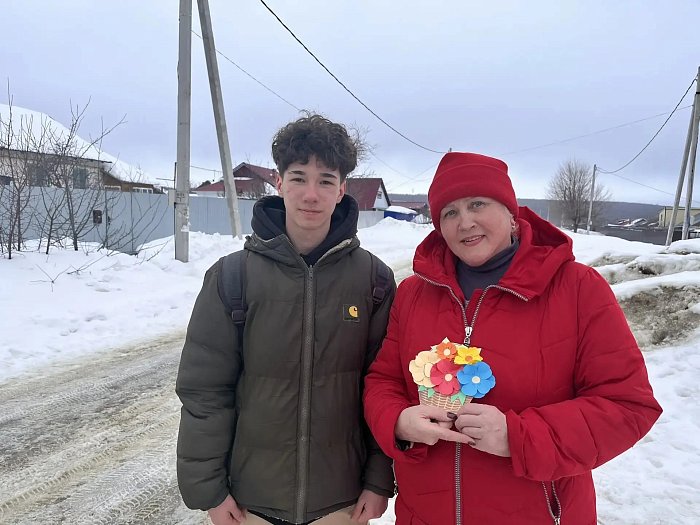 Шиханские юнармейцы поздравили жительниц города с наступающим 8 Марта