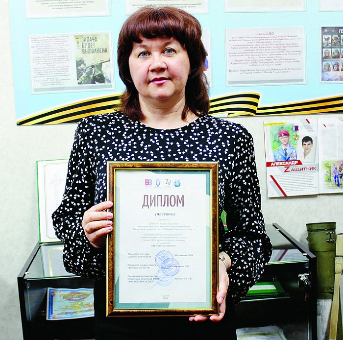 Вот так, сообща, мы закладываем фундамент для сохранения истории и передачи памяти подрастающему поколению. В прошлом году, в нашем регионе был организован первый конкурс «Музеи СВО: хранители ратной истории». Более 30-ти специализированных музеев, школьных музейных комнат и комнат боевой славы представили работы в трех номинациях. По решению жюри в номинации «Лучший экскурсовод» ведущему методисту ДК «Корунд» Ксении Шевченко присужден Диплом участника. Это наш первый опыт в таком масштабном событии, и мы достойно заявили о своей работе по патриотическому направлению на областном уровне. Конкурс также дал возможность пообщаться с коллегами из других районов, взять на заметку идеи более опытных коллег, обменяться контактами.