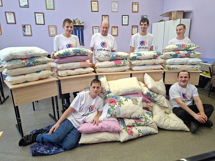Наши умелые мастера изготовили подушки с любовью и заботой. ️ Особая благодарность Совету ветеранов города Шиханы за поддержку!