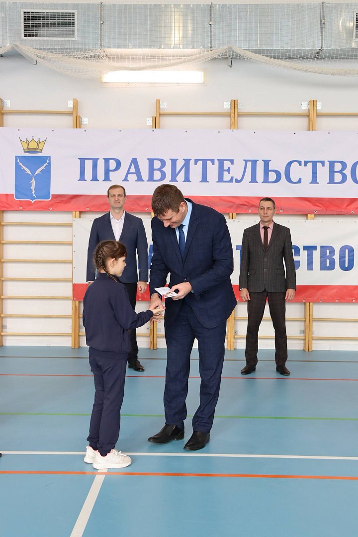 Особым моментом церемонии стало вручение знаков отличия: Виталий Александрович вручил награды ученикам школы №12 г. Шиханы имени Героя России А. И. Потапова, успешно выполнившим нормативы комплекса ГТО.