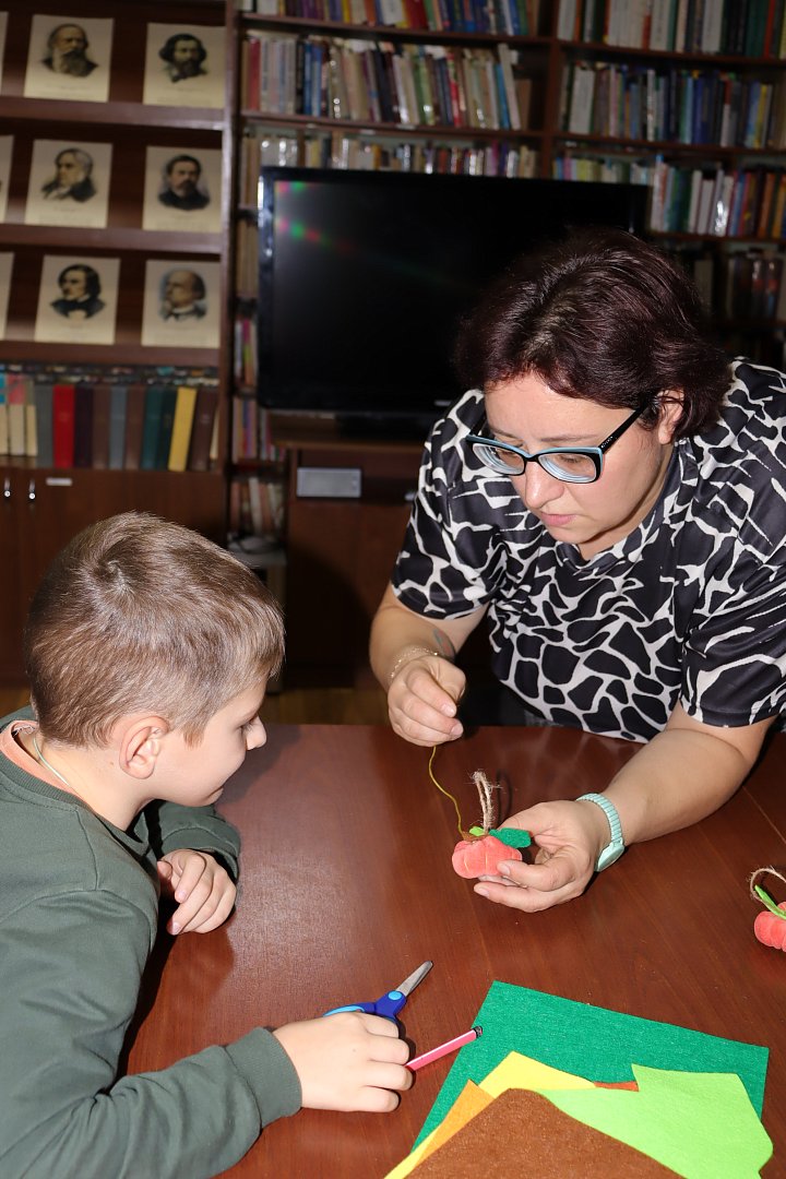 Осенние каникулы в читальном зале библиотеки вместе с ДК «Корунд» продолжаются! Прошёл мастер‑класс по изготовлению брелока «Тыковка» под руководством Зои Реве Редо. Ребята с увлечением включились в процесс, с восторгом выбирая цвета и текстуры и воплощая свои идеи в небольших ярких поделках.