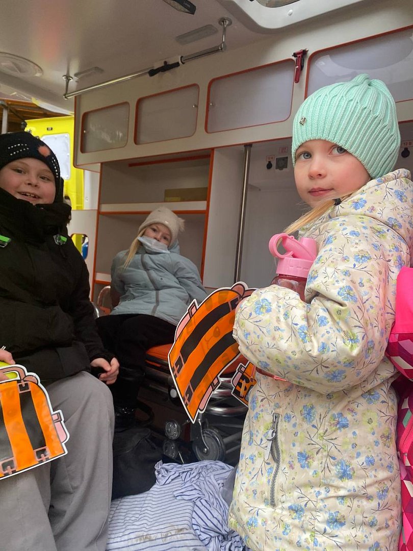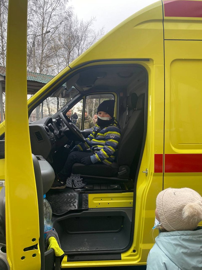 Затем ребята внимательно изучили внутреннее устройство автомобилей скорой помощи, испытав неподдельную радость от редкого шанса оказаться за рулём настоящего автомобиля неотложной службы.