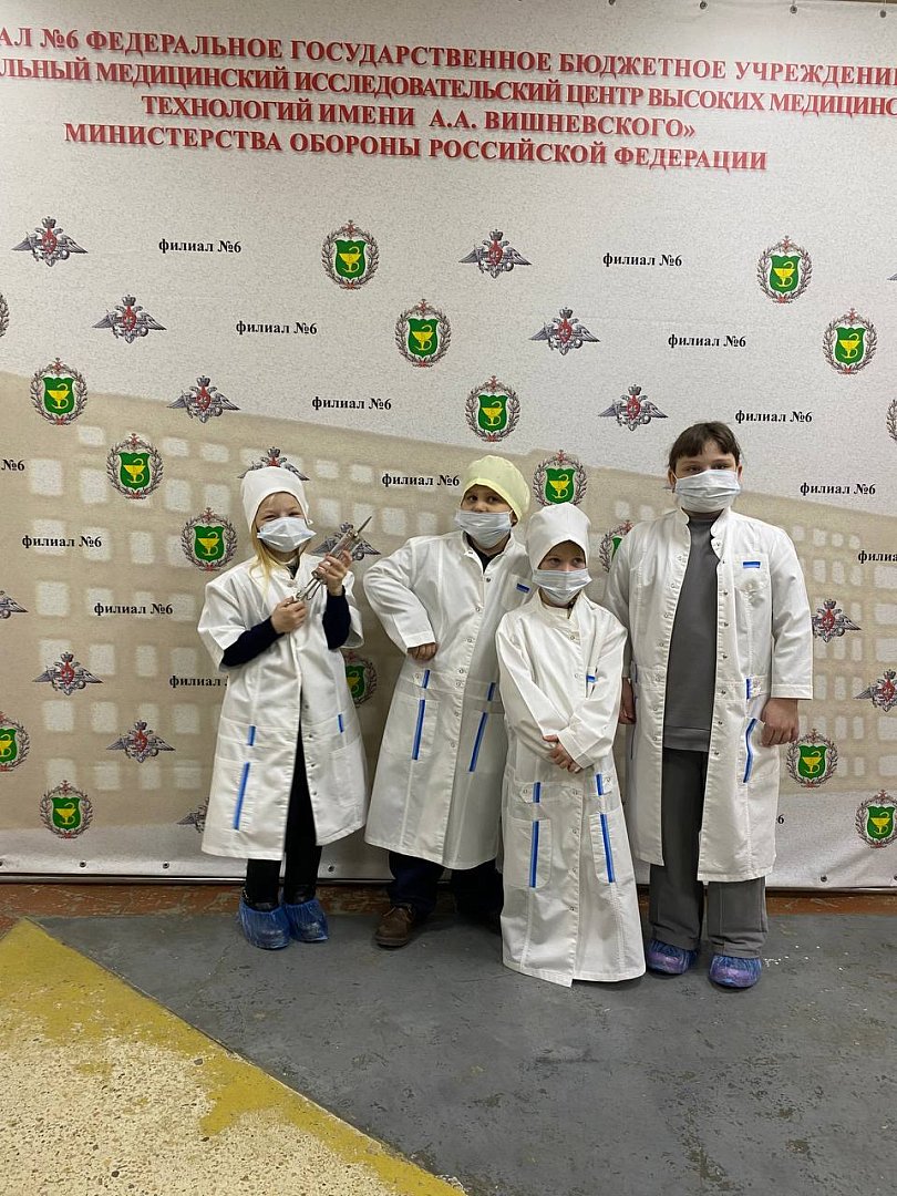В рамках акции «Есть такая профессия - Родину защищать от врага и от болезни» обучающиеся 1 «А» класса совместно с классным руководителем посетили шестой филиал ФГБУ «НМИЦ ВМТ имени А.А. Вишневского» Минобороны России.