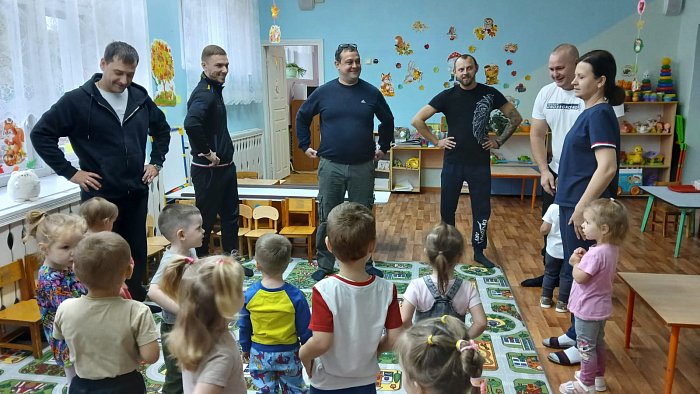 Всё началось с традиционной утренней зарядки вместе с папами. Под задорную музыку малыши и их отцы дружно шагали, хлопали и приседали. Эти совместные упражнения подарили море радости, бодрости и помогли по-настоящему настроиться на праздничный лад. Для малышей нет ничего приятнее, чем делать что-то важное рядом с папой!